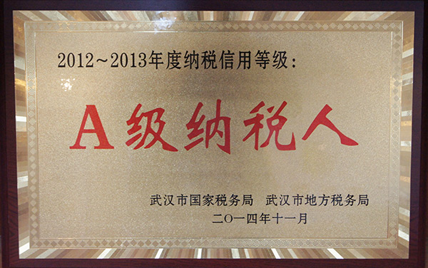 2014年獲得(dé)武漢市2012-2013年度“A級納稅人”獎項