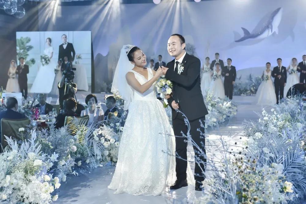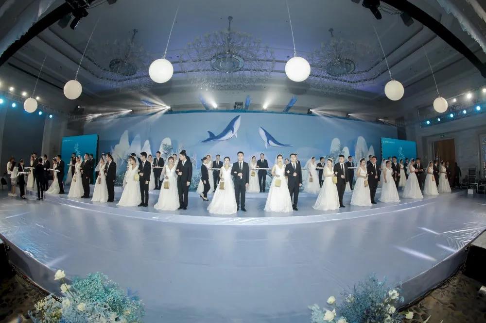 夢境中(zhōng)走出的“海的女兒”拉開夢(mèng)幻婚禮(lǐ)的序(xù)幕,30對新人在“海洋(yáng)精靈”的引(yǐn)領下(xià)依次入場,臉上洋溢著無比幸福的笑容,以默契合拍的舞蹈展(zhǎn)示(shì),成為全場焦點。