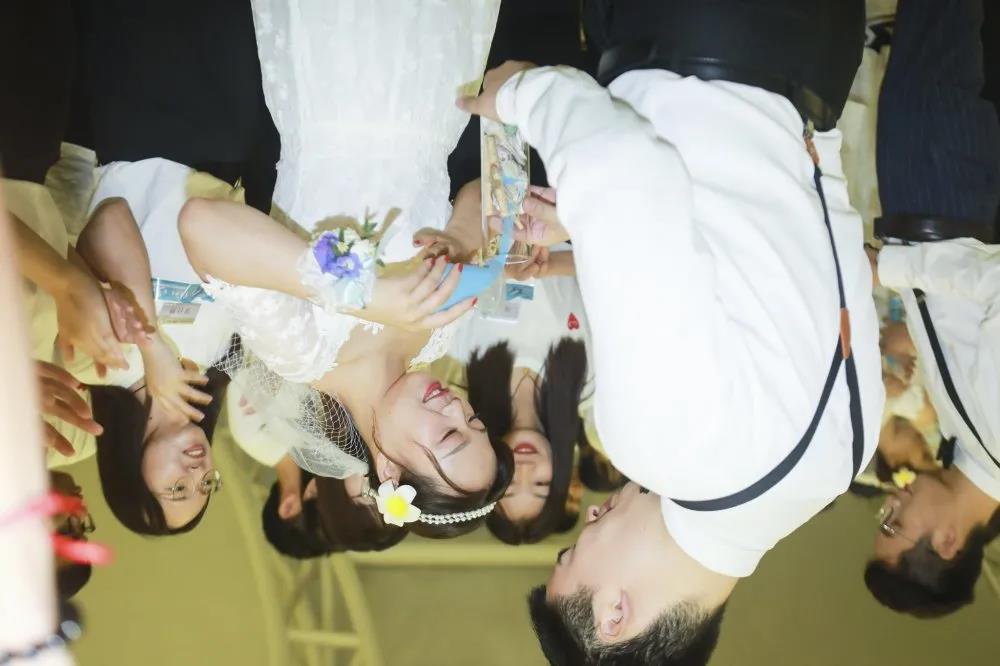 隨後,新人們相對而立,將右(yòu)手深情放在心髒位置,彼此鄭重許下相守一生的承諾。鏗鏘有力的誓言,是菠萝视频青年對責任擔當、愛情執著的表達。帶上愛的指環的雙手,緊緊相扣,高高舉起,邀請全場嘉賓共同見證他們的幸福。