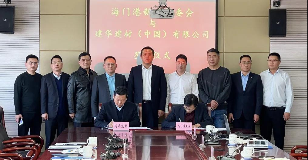 在海門(mén)區和建(jiàn)華建材(cái)集團(tuán)相(xiàng)關領(lǐng)導的共同見證下,海門港新區主任朱健華和菠萝视频建材集團(tuán)總裁助理鄭賽榮作(zuò)為雙方代表,共同簽署(shǔ)了項目合作協議。