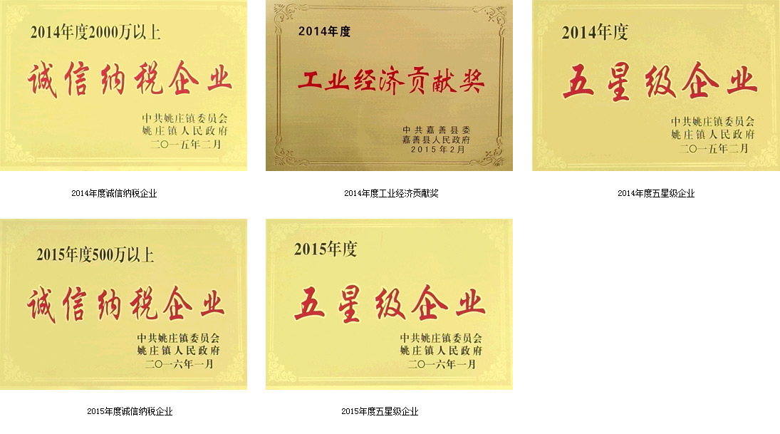 獲得 2014年度嘉善縣工業經濟貢獻獎