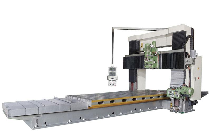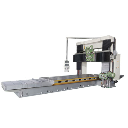 龍門銑床簡稱龍門銑,是具有門式框架和臥式(shì)長床身的銑床。龍門銑床上(shàng)可以用多把銑(xǐ)刀同時加(jiā)工表麵,加工精度和生產效率都比較高,適用於在成批和大量生產中加工大型工件的平麵和斜麵。數控龍門銑床還可(kě)加工空間曲麵和一些特型零件。