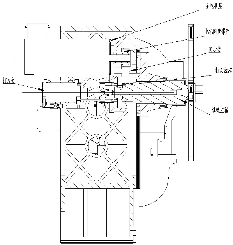 機床主傳動由主軸電機通過同步帶輪同步帶與主(zhǔ)軸同步帶輪直接相連來實現。主軸電機采用交流主軸電機(jī)。機床主傳動係統(tǒng)結(jié)構圖如圖3所示。